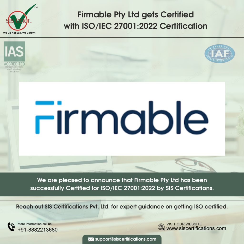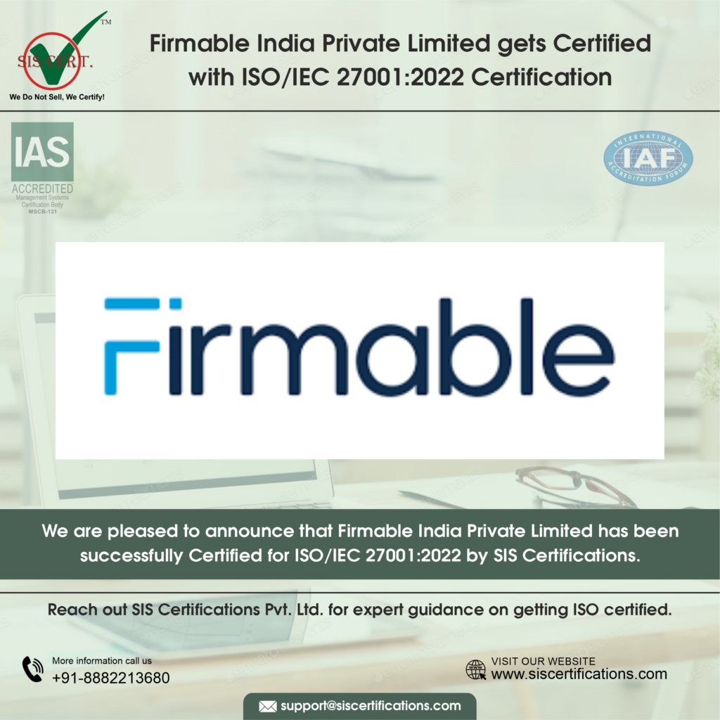 Firmable India Private Limited Strengthens Data Protection with ISO/IEC 27001:2022 Certification Firmable India Private Limited has completed Surveillance 01 for IAS-accredited ISO/IEC 27001:2022 certification for Information security, cybersecurity and privacy protection — Information security management system (ISMS). The certification demonstrates the organisation’s commitment to safeguarding data in an increasingly intelligence-driven B2B ecosystem. ISO/IEC 27001:2022 standard validates that Firmable India has implemented a robust Information Security Management System (ISMS) aligned with global best practices for managing information security risks. Achieving ISO/IEC 27001:2022 confirms that Firmable India Private Limited has adopted appropriate controls to protect data confidentiality, integrity, and availability across its digital operations. Scope of Certification The scope of the management system includes the Information Security Management System (ISMS) applies to the design, development, operation, maintenance, and support of a secure B2B data platform, including data collection, cleansing, enrichment, storage, analytics, CRM integrations, and AI-based sales intelligence services. The ISMS covers all people, processes, information assets, supporting infrastructure, and approved third-party services involved in delivering these services. Why ISO/IEC 27001:2022 Matters for Firmable India Private Limited? Information is not a support function but the product for data-centric organisations like Firmable. The ISO/IEC 27001 standard provides information security tools for managing vast datasets and delivering AI-powered sales intelligence. ISO/IEC 27001:2022 addresses modern risks associated with cloud platforms, API integrations, remote access, third-party dependencies, and advanced analytics environments. The standard ensures that security is embedded into every layer of the platform, not bolted on as an afterthought. Key Benefits of ISO/IEC 27001:2022 for Firmable India Private Limited It protects sensitive business data, client information, and proprietary analytics from unauthorized access or misuse Strengthens platform reliability by reducing the risk of cyber incidents, data breaches, and service disruptions Enhances credibility with enterprise clients and global partners who demand demonstrable data security compliance Supports regulatory alignment and risk-based decision-making across operations and third-party engagements About SIS Certifications SIS Certifications is recognised for its transparent, impartial, and rigorous audit methodology. During the certification audit, the team observed that Firmable India Private Limited had mature security controls, structured processes, disciplined documentation, and a leadership commitment to information security. Achieving ISO/IEC 27001:2022 certification with SIS Certifications reflects Firmable India Private Limited’s organisation-wide focus on trust, resilience, and long-term digital sustainability. Share the Post: Related Posts