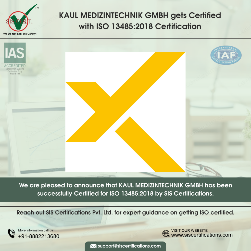 KAUL MEDIZINTECHNIK GMBH Strengthens Medical Device Quality with ISO 13485:2016 Certification KAUL MEDIZINTECHNIK GMBH has successfully achieved UAF-accredited 13485:2016 certification. It shows the organisation’s commitment to the highest standards of quality, safety, and regulatory compliance in the medical device sector. ISO 13485:2016 is the globally recognized benchmark for quality management system specifically designed for organizations involved in the medical device lifecycle, where precision is non-negotiable and patient safety is paramount. Achieving ISO 13485:2016 demonstrates that KAUL MEDIZINTECHNIK GMBH has established a robust, risk-based quality management framework that governs every critical stage from design and development to manufacturing, storage, and supply. Scope of Certification The scope of the management system includes Design, Development, Manufacturing and Storage Supply of Sterile & Non-Sterile Bone Plates, Bone Screws, Bone Nails, Wire, Pins & Washers, Spinal Implants, Cranial & Maxillofacial Implants, Arthroscopy Implants, External Fixator, Orthopaedic Surgical Instruments For Trauma, Spinal, External Fixators. Why ISO 13485:2016 Matters for Medical Device Manufacturing? Medical device manufacturing operates under intense regulatory scrutiny. ISO 13485:2016 ensures that quality is built into the system. The standard emphasizes risk management, product traceability, process validation, and strict control over both sterile and non-sterile production environments.  KAUL MEDIZINTECHNIK GMBH can ensure stronger regulatory alignment and greater confidence among surgeons, hospitals, and global distribution partners. Key Benefits of ISO 13485:2016 for KAUL MEDIZINTECHNIK GMBH Strengthens control over design and development processes to ensure devices consistently meet clinical and regulatory requirements Enhances risk management across the entire product lifecycle Improves traceability and documentation for audits and surveillance Supports smoother access to international markets where ISO 13485 compliance is a mandatory requirement Reinforces trust among healthcare professionals and stakeholders by demonstrating uncompromising quality discipline  About SIS Certifications SIS Certifications is recognized for its transparent, impartial, and rigorous audit methodology. During the certification audit, the audit team observed KAUL MEDIZINTECHNIK GMBH’s strong process orientation, comprehensive documentation practices, and clear leadership commitment to quality and regulatory compliance. Achieving ISO 13485:2016 certification with SIS Certifications reflects KAUL MEDIZINTECHNIK GMBH’s focused approach to operational excellence, patient safety, and long-term sustainability. Share the Post: Related Posts