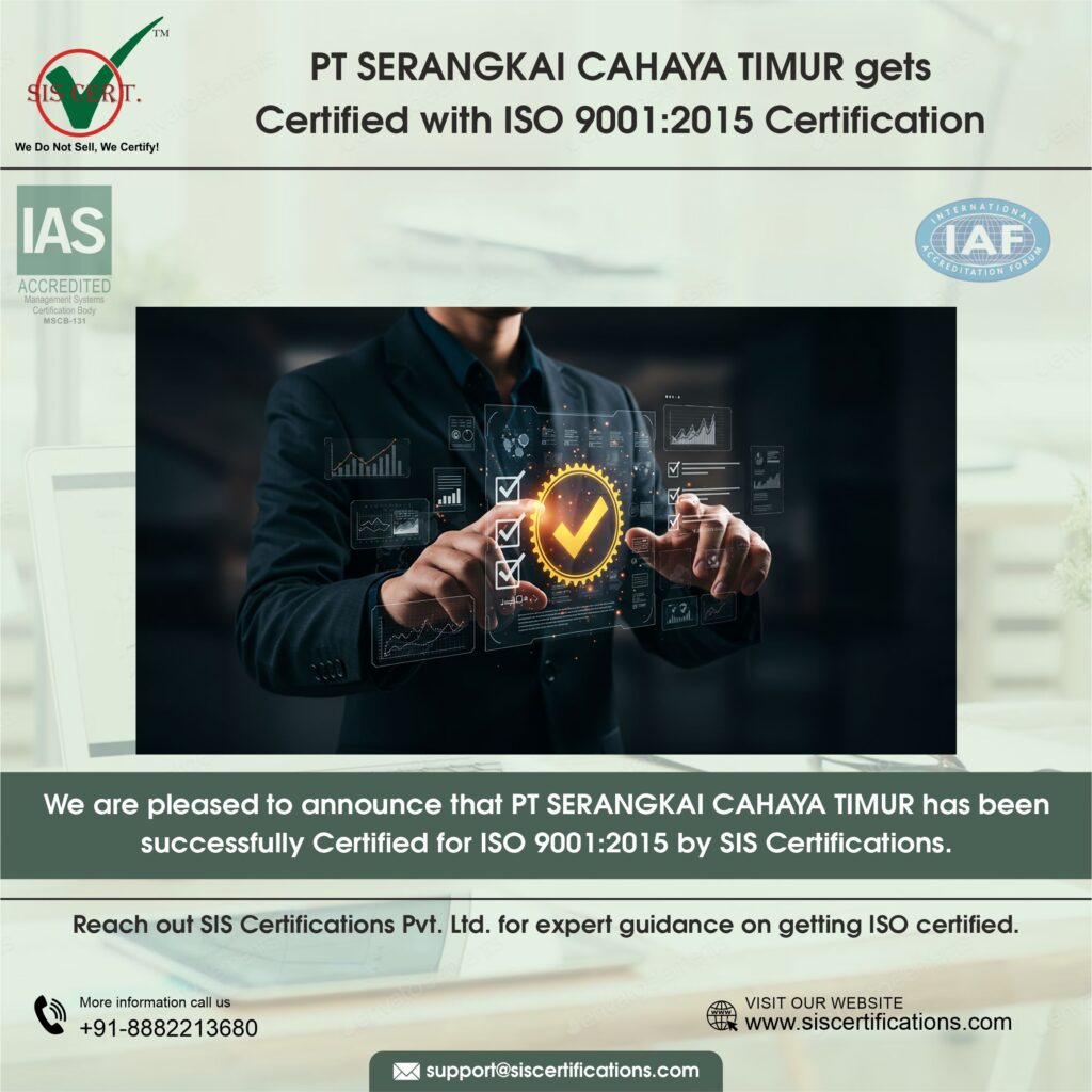 PT Serangkai Cahaya Timur Earns ISO 9001:2015 Certification – Raising the Bar in Overseas Workforce Selection and Placement We are thrilled to announce that PT Serangkai Cahaya Timur has officially completed the initial audit for ISO 9001:2015 certification for its Quality Management System (QMS). This internationally recognized standard marks a significant milestone for the company and reflects its strong commitment to quality, accountability, and excellence in overseas workforce selection and placement services.  At a time when global labor mobility demands trust, efficiency, and transparency, PT Serangkai Cahaya Timur is setting a new standard by embedding internationally aligned practices into the heart of its operations. About PT Serangkai Cahaya Timur PT Serangkai Cahaya Timur is a dedicated manpower agency with a mission to connect skilled and capable Indonesian workers with employment opportunities overseas. Known for its ethical practices, meticulous selection process, and hands-on support, the company plays a vital role in shaping international careers while uplifting communities back home. Scope of Certification PT Serangkai Cahaya Timur’s ISO 9001:2015 certification applies to the following : “Provision of Overseas Workforce Selection and Placement Activities.” Why ISO 9001:2015 Matters in International Recruitment In the world of international manpower services, ISO 9001:2015 is more than just a standard—it’s a strategic framework that promotes clarity, consistency, and customer satisfaction. For PT Serangkai Cahaya Timur, achieving this certification means they are not only meeting global benchmarks but actively improving processes to serve both employers and job seekers better. With this certification, the company affirms its dedication to transparency, ethical practices, and building long-term relationships based on trust and mutual growth.  Key Benefits of ISO 9001:2015 for PT Serangkai Cahaya Timur Reliable Quality Control –Every stage of the recruitment and placement process now follows a well-defined, globally recognized quality system—reducing errors and ensuring high standards. Enhanced Client Confidence – International employers can trust that each candidate recommended by PT Serangkai Cahaya Timur has been thoroughly vetted through a system that prioritizes accuracy, readiness, and fit. Streamlined Operations – From documentation to deployment, processes have been optimized—making the experience smoother for workers, clients, and internal teams alike. Stronger Compliance and Ethics – By aligning with ISO 9001:2015, the company reinforces its commitment to legal, regulatory, and ethical responsibilities, both in Indonesia and abroad. Competitive Advantage – In a highly scrutinized industry, ISO certification positions the company as a leader in responsible recruitment, trusted by clients and government bodies alike. Culture of Continuous Improvement – With systems in place for feedback and evaluation, PT Serangkai Cahaya Timur is better equipped to adapt, innovate, and improve every aspect of its services. Looking Ahead: Quality That Drives Empowerment Achieving ISO 9001:2015 is a remarkable accomplishment, but for PT Serangkai Cahaya Timur, it is just the beginning. The company is already planning future investments in technology, candidate care programs, and partnerships that will strengthen its role in the global employment ecosystem. Leadership is also exploring additional ISO certifications to enhance organizational maturity, including: ISO 45001 – Occupational Health & Safety: To protect staff and deployed workers alike. ISO 26000 – Social Responsibility: To further support ethical, fair, and sustainable employment practices. ISO/IEC 27001 –: To safeguard personal and client data with the highest standards. SIS Certifications – Trusted Audit Partner The certification journey was guided by SIS Certifications, an internationally respected certification body known for its integrity, thoroughness, and support. The audit team commended PT Serangkai Cahaya Timur’s proactive attitude, robust internal controls, and clear documentation. Passing this rigorous audit reflects the organization’s strong foundation in quality and its readiness to take on the challenges of international recruitment with professionalism and purpose. A Team Effort Worth Celebrating This achievement is the result of collective commitment—from management to administrative staff, field recruiters to training coordinators. Each individual contributed to building a system where quality, trust, and care define the company’s daily operations. At SIS Certifications, we are honored to be part of this transformational journey and extend our heartfelt congratulations to PT Serangkai Cahaya Timur for this exceptional milestone. Congratulations once again to PT Serangkai Cahaya Timur! With ISO 9001:2015 now part of your foundation, we’re confident your journey will continue to empower people, strengthen families, and set new benchmarks in ethical global workforce placement. Share the Post: Related Posts