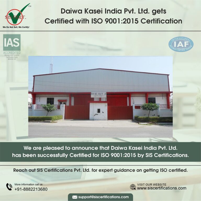 Daiwa Kasei India Pvt. Ltd. has renewed its ISO 9001:2015 certification after a successful surveillance audit. For manufacturers such as Daiwa Kasei India Pvt. Ltd., it means more structured control, so the products meet the customer’s specific needs. Congratulations to the entire team of Daiwa Kasei India Pvt. Ltd. for maintaining this internationally recognized certification and demonstrating its commitment to customer satisfaction and continual improvement in its services.