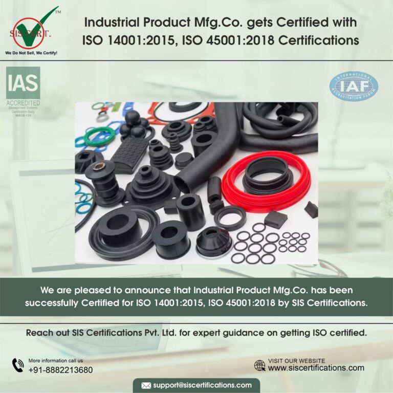 Industrial Product Mfg. Co. was certified by SIS Certifications, a leading global certification body with high repute and credibility in the ISO compliance secyor. With a presence across the globe in more than 50 countries, SIS Certifications is known for its impartial, transparent and rigorous audits. The certification body has more than 15,000 clients internationally and is accredited with IAS (International Accreditation Services) and UAF (United Accreditation Foundation).