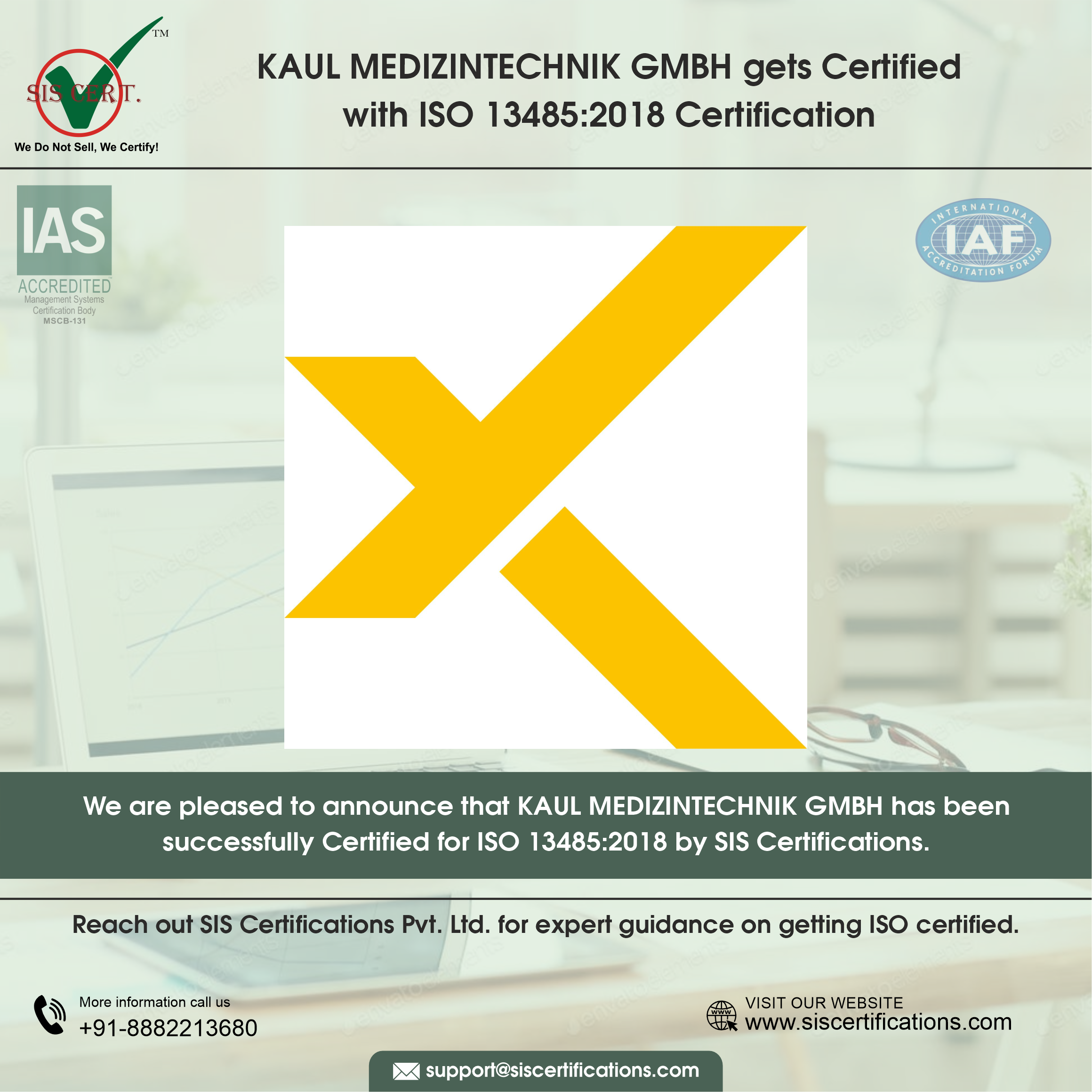 SIS CERTIFICATIONS certified PUGLISI & PARTNERS SOCIETA’ TRA PROFESSIONISTI S.R.L. that is accredited by both International Accreditation Services (IAS) and United Accreditation Foundation (UAF) Services. Several certifications, including but not limited to ISO 9001, ISO 14001, ISO 22301, ISO 21001, ISO 37001, ISO 41001, ISO 45001, ISO 50001, ISO 13485, ISO 22000, HACCP, ISO 27001, IATF 16949, CE, RoHS, KOSHER, HALAL, Product Certifications, and training comes under the aegis of its services.